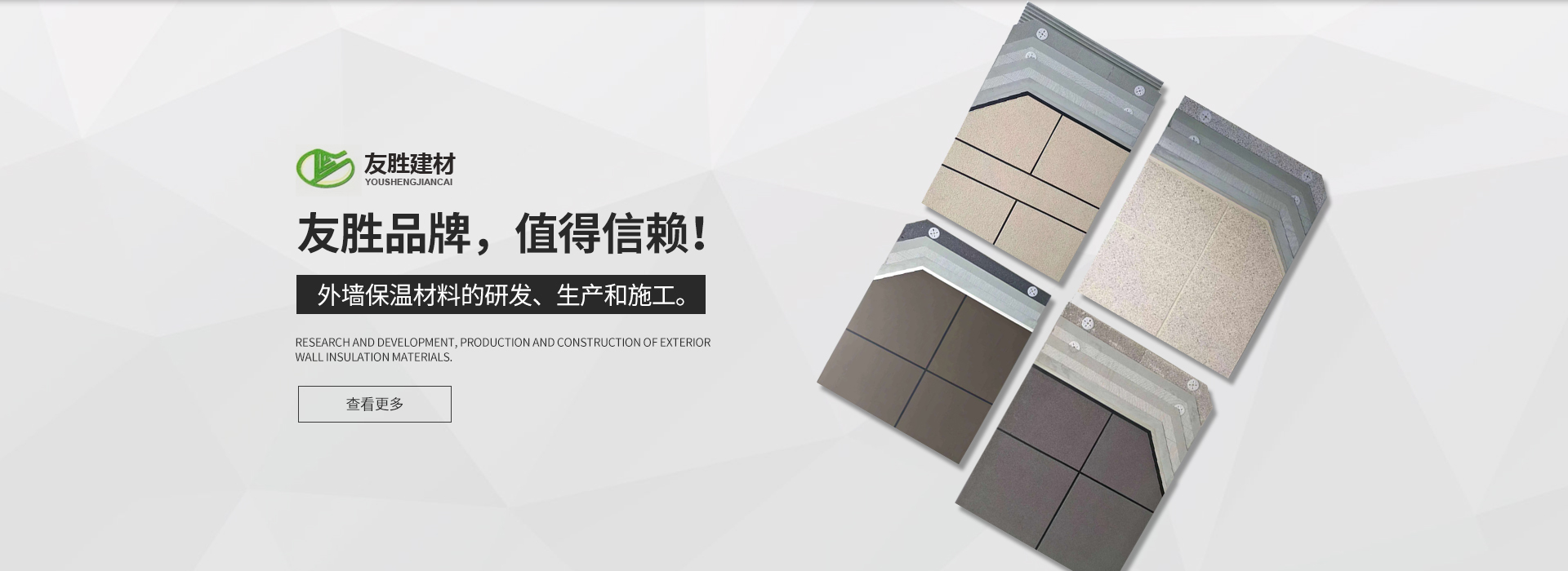 安徽友勝建材科技集團有限公司是一家專業從事建筑施工與節(jié)能保溫及裝飾裝修生產、施工企業。企業于2008年從事外墻保溫材料的研發(fā)。生產和施工?,F公司旗下擁有(安徽舒然裝飾 工程有限公司)裝飾裝修貳級資質、防水防腐及保溫貳級資質。旗下系列產品有:巖棉板、巖棉復合板、石墨聚苯板、珍珠巖板、勻質板、地坪保溫隔聲板,粘結、抹面及無機輕型材料等。